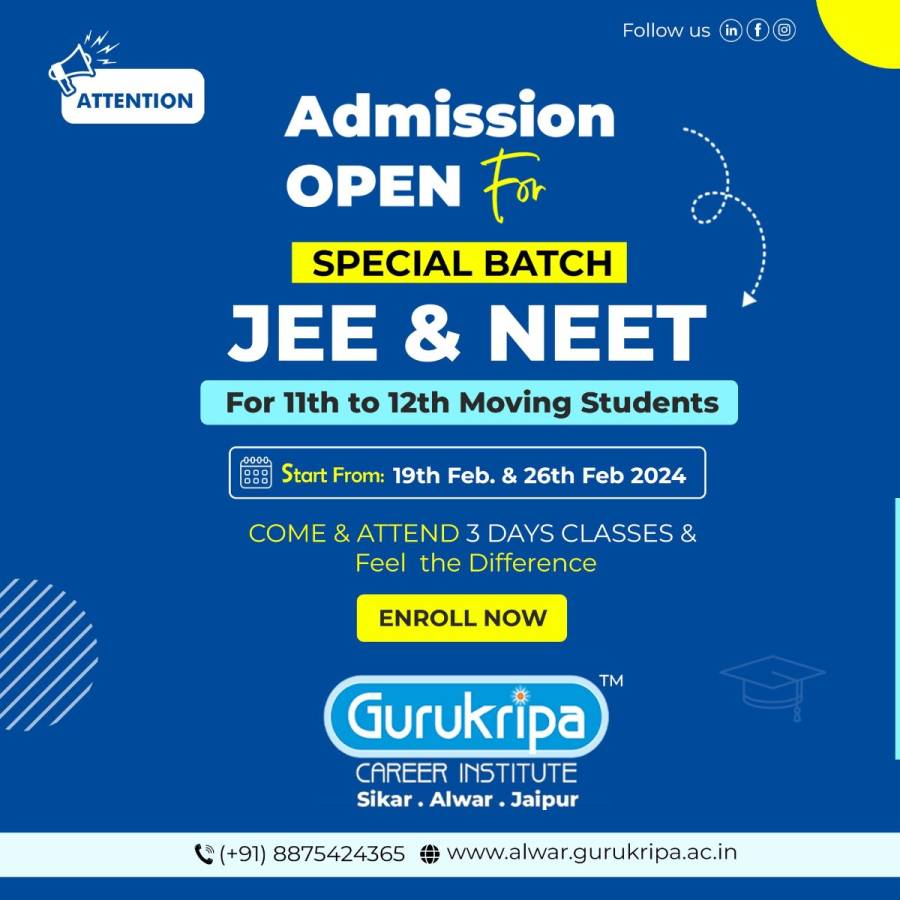 Achieve your IIT JEE dreams with Gurukripa Career Institute in Alwar. Offering top-notch coaching, experienced faculty, and a proven track record of success, we provide personalized guidance to help you excel in the IIT JEE exams. Join us today for a brighter future!