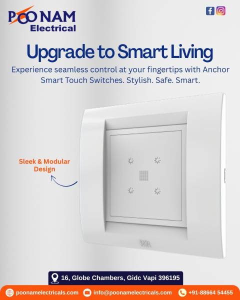 As a certified and experienced name in the industry, Poonam Electricals is one of the most recommended Anchor Switches Dealers in Vapi. We provide authentic and premium-grade Anchor electrical products, backed by years of trust and customer satisfaction. Being Authorised Dealers of Anchor, and a reputed Anchor Distributor and Anchor Accessories Supplier, we offer a complete product range to cater to residential, industrial, and commercial needs. Our professional team assists you in selecting the right electrical solutions with transparency, competitive pricing, and quick delivery. Trust Poonam Electricals for your next electrical purchase in Vapi.