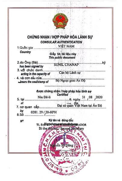 Vietnam Embassy Attestation is a fundamental procedure and more complex procedure compared to acquiring an apostille stamp. In the certificate Attestation for Vietnam, First It has to be reviewed by the Home Ministry and Ministry of External Affairs. The respective Vietnam Consulate can finally legalize the document for use in Vietnam. It’s called the Embassy verification certificate for Vietnam