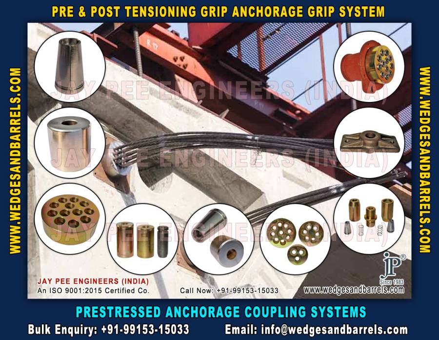 Wedges and Barrels, anchor heads, Post Tensioning Anchor Heads, grip system anchor heads, wedge coupler anchor heads, anchor plates, bearing plates, Post Tensioning anchor plates, grip system anchor plates, post tensioning grip system, post tensioning Wedge Couplers, Wedge Couplers system, grip systems, Wedge Enclosed Couplers, Wedge Couplers Grip Systems, pre stressed grip systems, Prestressing Wedges Barrels, Anchorite Wedges, Tapered Barrels, Anchor Grips Wedges, Open Grip barrels Wedges, Wire bridge barrel & wedge, Gripfast Wedges, Wedge and barrel for construction, Wedges and barrels for bridge, Railway wedges and barrels, Concrete pole wedges and barrels, Wire bridge wedges barrels, Wire rope bridge wedges barrels, Grip Fasteners, Barrels and wedges manufacturers exporters, suppliers and distributors in india, Spain, Oman, South Africa, United Arab Emirates, Israel, Bangladesh, Nepal, Colombia, Malaysia, Kuwait, Saudi Arabia, Nigeria, Namibia, Sri Lanka, Kenya, turkey, pakistan, south africa Our manufacturing products range includes Prestressed Anchor, Prestressing Anchorage Coupling System, Post Tensioning Bridge Anchor System, Anchor Barrels and Wedges, Post Tensioning Products, Prestresed anchor plate anchor wedges with prestressed equipment, trumpet anchorage set, Post Tensioning System, bridges stressing, Pre Stressing Wedges and Barrels, Post Stressing Wedges and Barrels, Anchor Barrel And Wedges, Prestressed & Post Tensioning System, Prestressed Anchor Grips Tool Wedges Grips For PC Strand Tool, Prestressing Anchor And Wedges