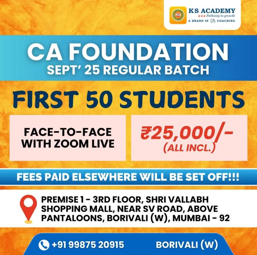 KS Academy provides the CA foundation coaching classes and Institutes in Mumbai. CA Foundation, With In-depth Conceptual Clarity to Clear CA foundation in very First Attempt.