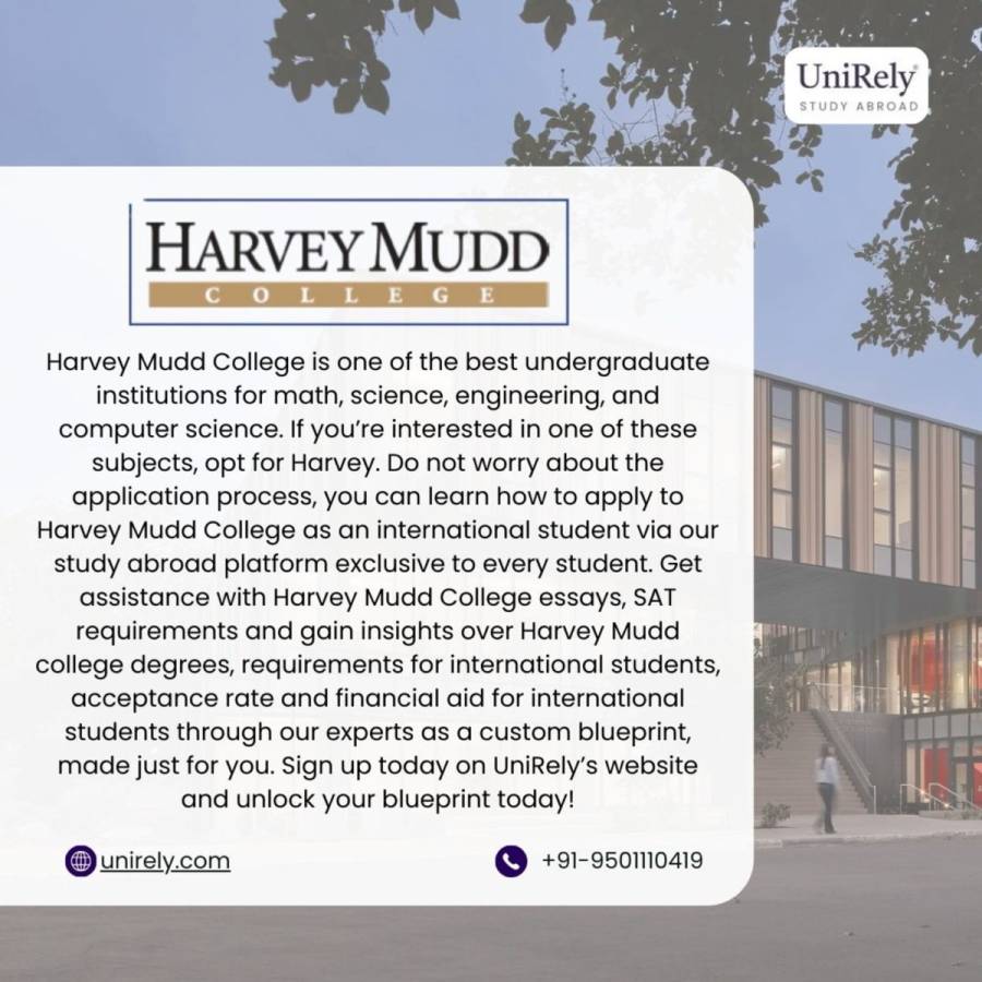 Harvey Mudd College is one of the best undergraduate institutions for math, science, engineering, and computer science. If you’re interested in one of these subjects, opt for Harvey. Do not worry about the application process, you can learn how to apply to Harvey Mudd College as an international student via our study abroad platform exclusive to every student. Get assistance with Harvey Mudd College essays, SAT requirements and gain insights over Harvey Mudd college degrees, requirements for international students, acceptance rate and financial aid for international students through our experts as a custom blueprint, made just for you. Sign up today on UniRely’s website and unlock your blueprint today!
