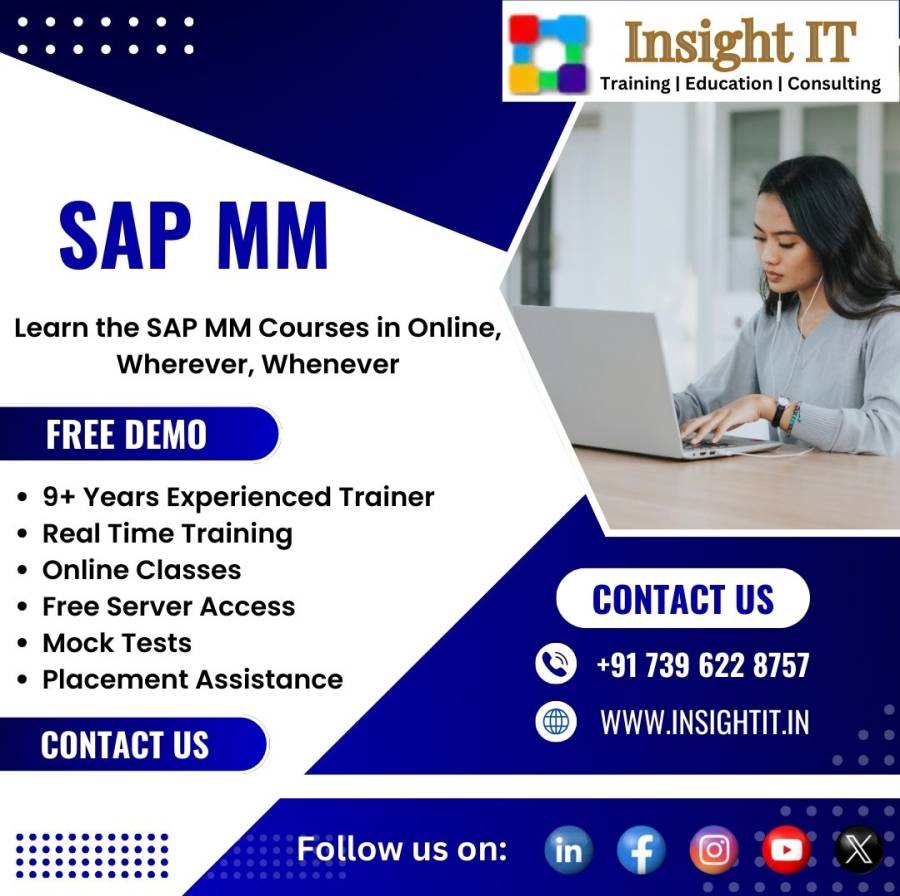 Learn SAP MM Training in Hyderabad at Insight IT Training Institute – your trusted partner for building a strong foundation in one of the most in-demand modules in the SAP ERP system. SAP MM (Materials Management) plays a vital role in procurement, inventory management, and material planning across supply chains in every industry.