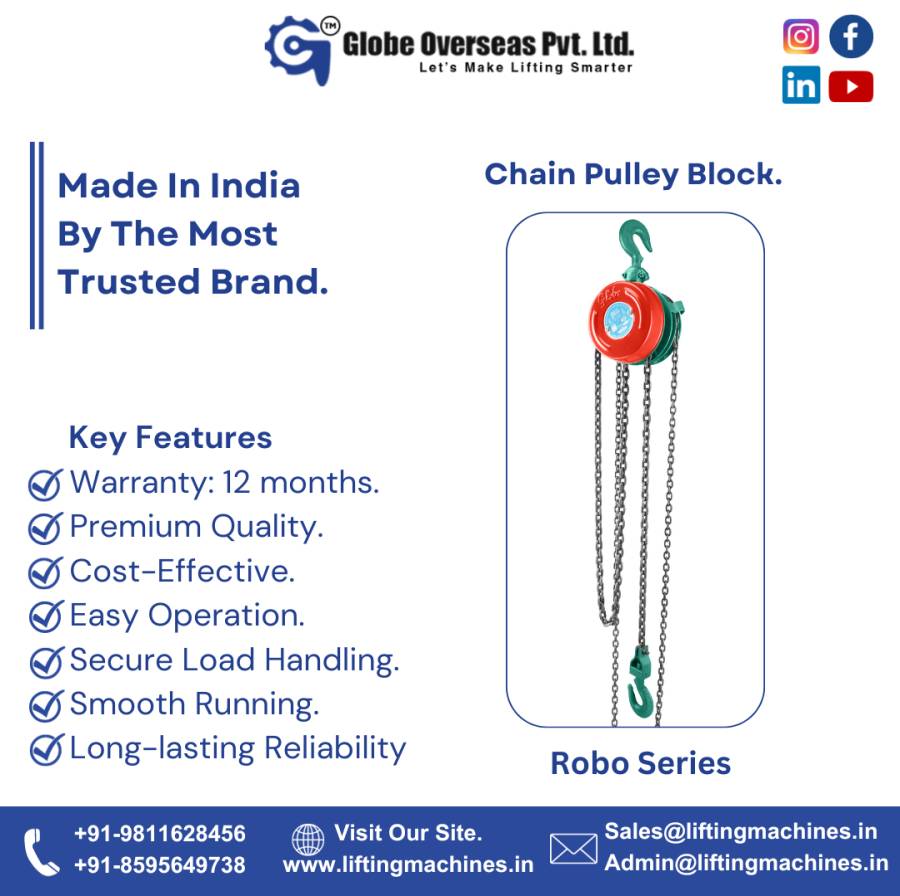 Our comprehensive range of material handling equipment is designed to meet the highest standards of performance and safety. Whether you're in need of Chain Pulley Block, Overhead Cranes, Electric & Chain Hoists, Electric Winch Machines, and Monorail Travelling Trolleys, Jib Cranes Etc. We have the solution to elevate your operational efficiency.