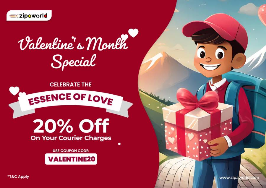 Zipaworld introduces to you its special offer for Valentine's Month - " Essence of Love " on courier charges with minimum invoice of Rs. 60. Benefit from our offer, make your loved one feel your presence. |